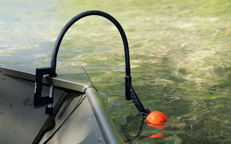 - Настройте гнучку опору так, щоб ехолот був наполовину у воді.