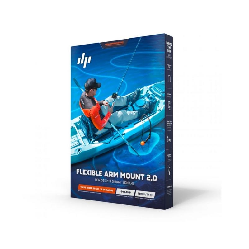 Гнучке кріплення Flexible Arm Mount 2.0 дозволяє прикріпити ехолот Deeper до будь-якого човна, байдарки, каное, надувного човна або плавального пристрою з радіоуправлінням.Струбцина може бути закріплена на будь-якій деталі завтовшки до 70 мм. Збільшення довжини кріплення до 79см дозволяє використати його для ширшого діапазону судів.Завдяки регульованому нахилу Flexible Arm, алюмінієвий стержень можна зігнути так, щоб вийшов найбільш відповідний кут огляду.