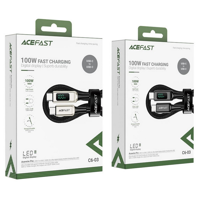Кабель ACEFAST C6-03 Type-C to Type-C 5A, 100W, 2m, nylon, zinc connectors, digital display, Black