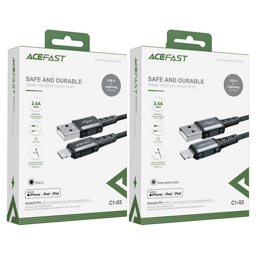 Кабель ACEFAST C1-02 USB to iP 2.4A, 1.2m, nylon, aluminum connectors, Black