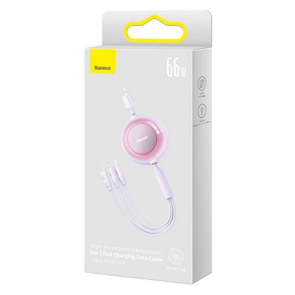 Кабель Baseus Bright Mirror 2 Series Retractable 3-in-1 Fast Charging Data Cable USB to M+L+C 66W 1.1m Purple