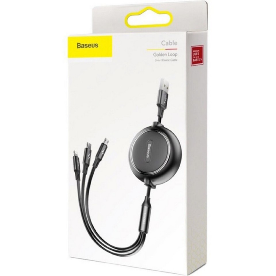 Кабель Baseus Golden Loop Three-in-One Elastic Data Cable USB for M+L+T 3.5A 1.2m Black
