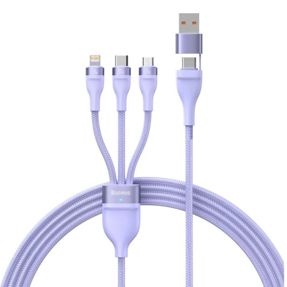 Кабель Baseus Flash Series Ⅱ Two-for-three Charging Cable U+C to M+L+C 100W 1.2m Purple