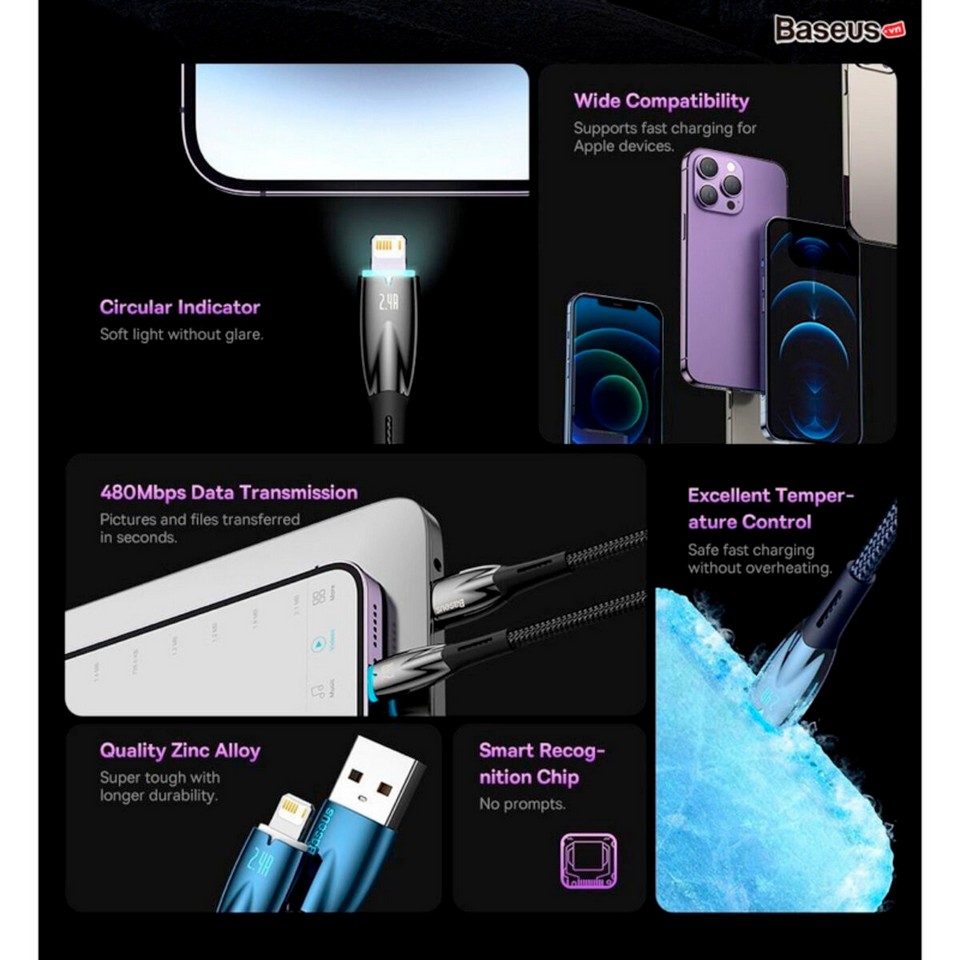 Кабель Baseus Glimmer Series Fast Charging Data Cable USB to iP 2.4A 2m Blue