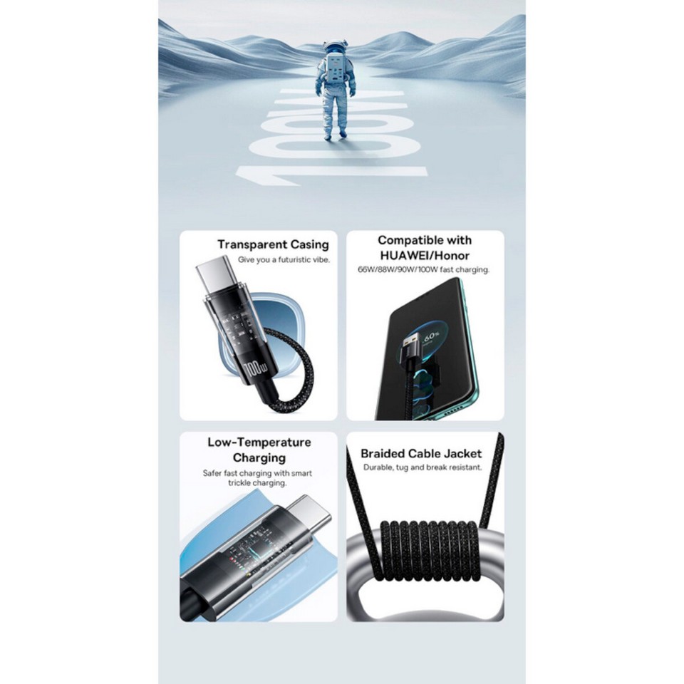 Кабель Baseus Gem Fast-Charging Data Cable USB to USB-C 100W 1m Cluster Black