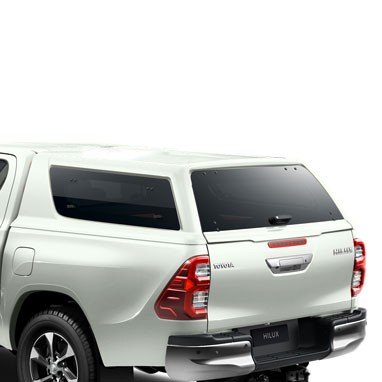 Жорсткий кунг для Hilux виготовлений з подвійного пластикового покриття з АБС-пластику, що забезпечує підвищену міцність. Він має висувні вікна з петлевими замками та тонуванням, а також обладнаний внутрішніми світлодіодними ліхтарями, які працюють на батарейках.