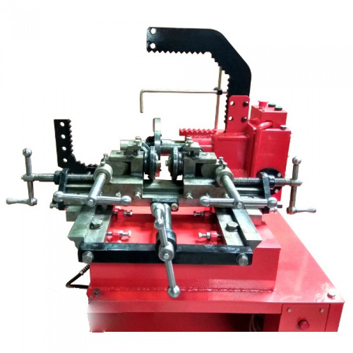Верстат дископравильний пневмогідравлічний SDP-220 AIRKRAFT призначений для відновлення дисків коліс легкових та малотоннажних автомобілів, розмірами: - діаметром від 11 до 26 дюймів; - Завширшки від 3 до 12 дюймів. Верстат дозволяє усунути еліпсність, радіальне та осьове биття диска автомобільного колеса, відновити профіль місць під установку шини, місцеві пошкодження. Місце рихтування на диску попередньо необхідно підігріти пальником (зі верстатом не постачається). Остаточне відновлення проводиться методом одночасної або послідовної двосторонньої прокатки та витяжки зовнішньої та внутрішньої частини диска стаціонарними та поворотними роликами. Два режими роботи для зручності, що постійно обертається і переривчасте переміщення при натиснутій кнопці. Також є можливість повністю зупинити роботу верстата. Спеціальні кріплення для різців, різці докуповуються окремо. Особливості: Регульовані упори для зручності редагування диска; Наявність лінійки виявлення биття; Пневмогідравлічний привід рихтувального пристрою; Управління рихтувальним пристосуванням за допомогою педалі; Можливість ручного підкачування рихтувального пристосування; Зручний доступ до пульта керування; Два режими роботи двигуна (звичайний та уривчастий з реверсом); Реверс з можливістю точного припасування до місця деформації; Універсальний фланець для кріплення широкого спектру колісних дисків; Комплект конусів для центрування диска; Комплект наставок для рихтування; Можливість встановлення різців. Гарантія 1 рік