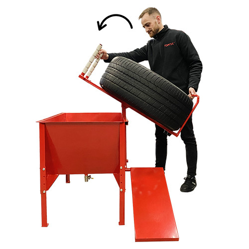 Призначена для перевірки камер та безкамерних шин на герметичність, пошук проколів та порізів. Конструкція ванної дозволяє працювати з колесами діаметром до R17". Трап для закочення колеса і механічний ліфт Зручна, проста у використанні конструкція дозволяє легко встановити і витягнути колесо з резервуара. Має чотири положення, дозволяє підібрати потрібну висоту в залежності від умов використання: застосування ванної для коліс: на шиномонтажі, на автосервісі, на станціях технічного обслуговування, як обладнання для автолюбителів та автовласників.