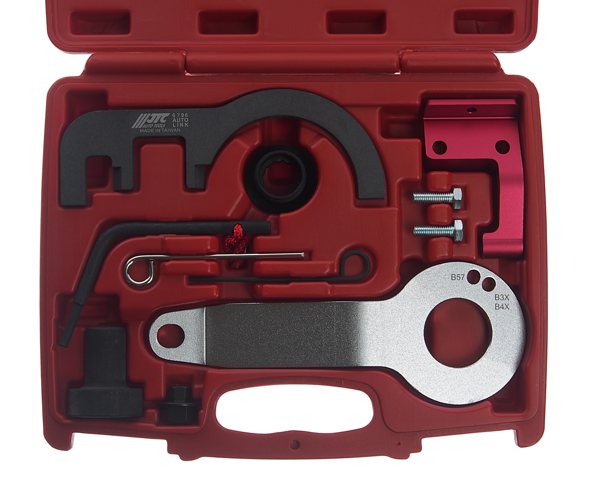 Набір інструментів для встановлення та регулювання фаз ГРМ з дизельними двигунами 1,5 та 2,0 л. Підходить для : BMW 114d, 116d 118d, 214d 125d (2015-2017) BMW 216d, 218d, 220d, 225d (2014-2017) BMW 316d, 320d, 325 8d (2014-2017 ) BMW 518d (2015-2017) BMW X1, X3, X4, X5, Efficient Dynamics, xDrive та sDrive (2014-2017) MINI One D, Cooper D/SD (2014-2017) Коди двигунів: 1,5 літра D15A, B37 C15A) 2,0 літра (B47 D20A, B47 D20B, B47 C20A, B47 C20B) Застосування: BMW B37, B47, B57. Bm номер: 118760, 116480, 2365488, 2288380, 2448914, 2420824, 113340.