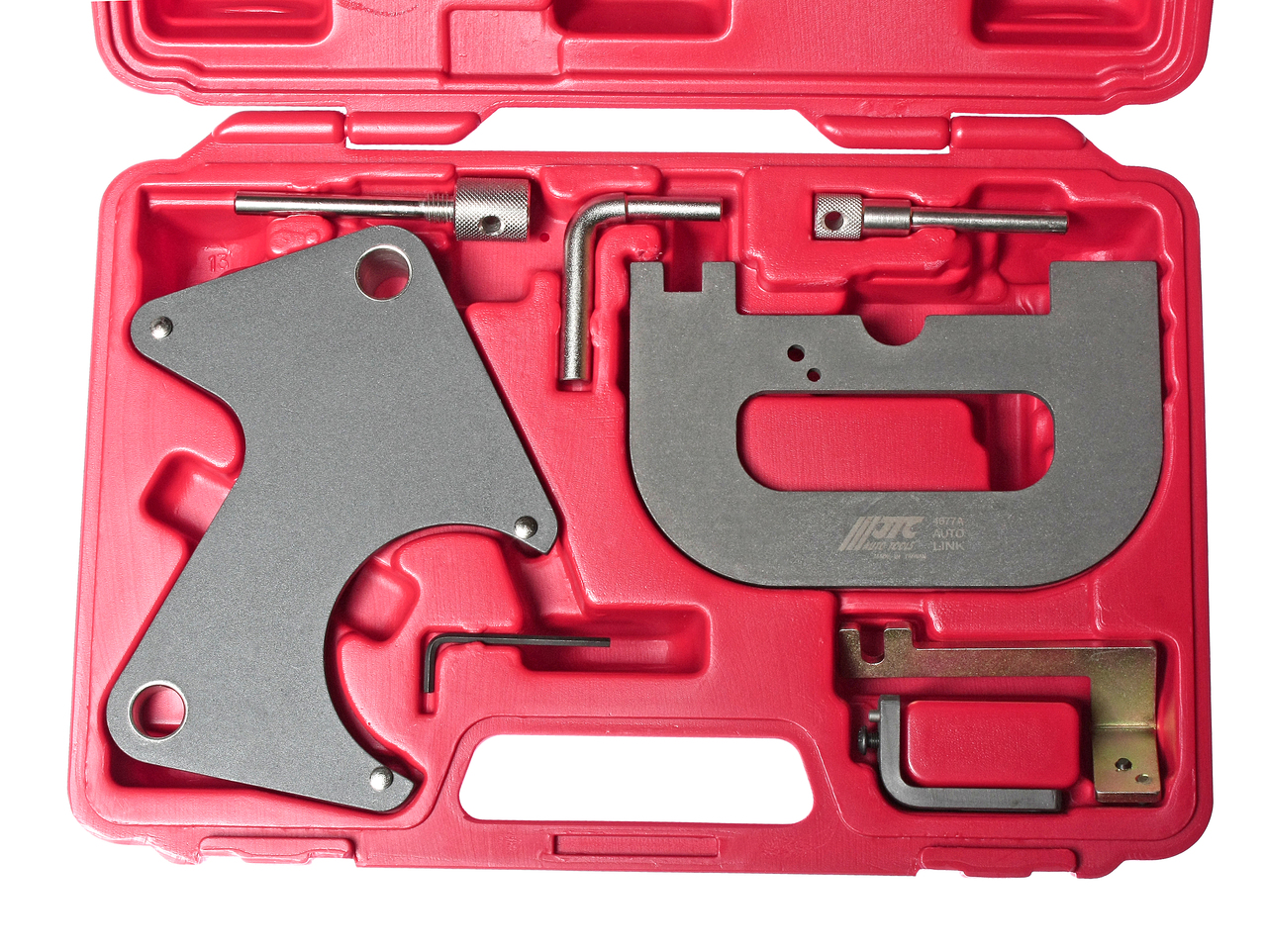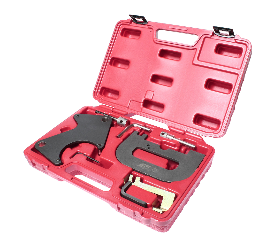 Опис Пристрій для регулювання шківа розподільного валу призначений для фіксації шківів під час заміни приводного ременя та наступної коректної установки фаз ГРМ. Застосування: Рено (Renault) 16V &K4J, K4M &F4P, F4R. Упаковка: міцний переносний кейс.