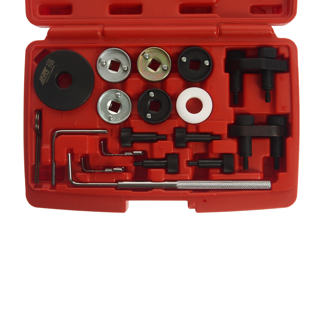 Опис 4382K JTC Використовується для правильного встановлення фаз ГРМ. Застосовується для ремонту двигунів автомобілів VAG TSI, TFSI VAG EA888 (1.8л. та 2.0л., 2006-2013 р.в.) Коди двигунів: BYT, BZB, CABA, CABB, CABD, CADA, CAEA, CAEB, CAWA, CAWB , CBFA, CCTA, CCZA, CCZB, CCZC, CDAA, CDAB, CDHA, CDHB, CDNB, CDNC, CDND, CESA, CETA, CFKA, CGYA, CJEB, CJSA, ;CJSB. Оригінальні номери: T10352, /1, /2, /3, /4,;