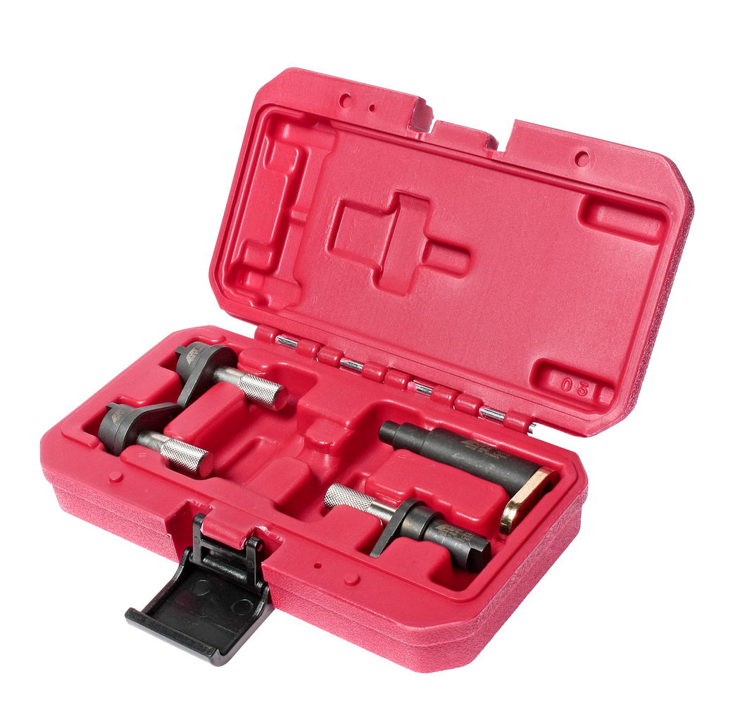 Опис Комплектація Фіксатор розподільного валу (арт. 4769-1, 4769-3)3 шт. Фіксуючий палець маховика (арт. 4769-2) 1 шт. Опис Використовується для блокування розподільного валу під час регулювання фаз ГРМ. Оригінальні номери: Т10120 (4769-3), Т10121 (4769-2), Т10123 (4769-1). Застосування; Двигун: 1.2L / одновальний 2V на циліндр; Двигун: 1.2L / двовальний 3V на циліндр; Модифікації моторів: AWY, AZQ, BMD, BME; Оригінальні номери пристроїв VAG: T10120 / T10121 / T10123;