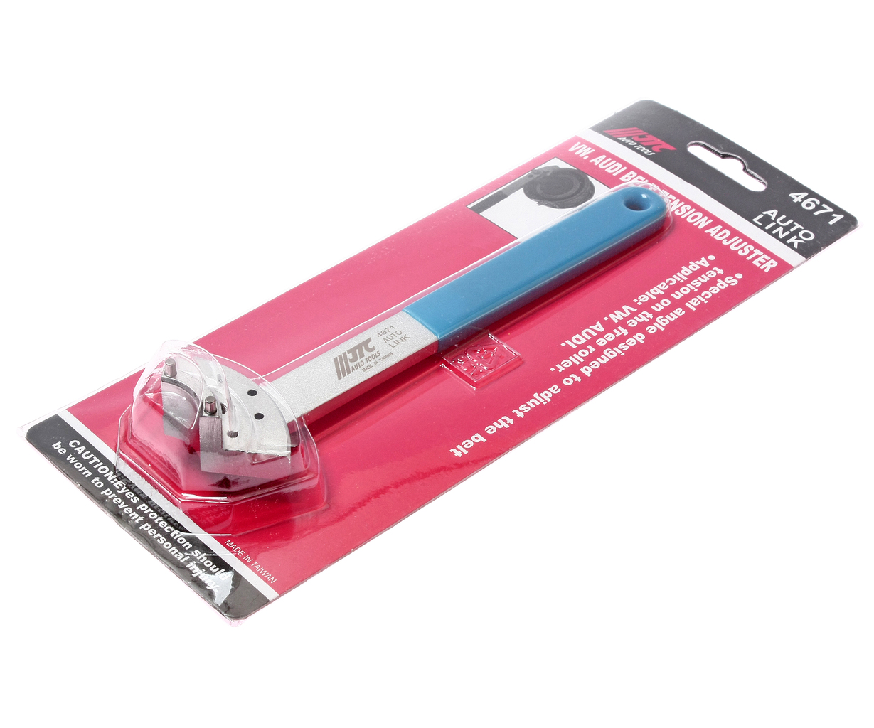 Спеціально вигнута конструкція призначена для застосування у вузьких та важкодоступних місцях автомобіля. Дві шпильки утримують натяжний ролик при регулюванні. Оригінальний номер ОЕМ: V159. Застосування: Фольксваген (Volkswagen), Audi (Audi), Шкода (Skoda), Сеат (Seat).