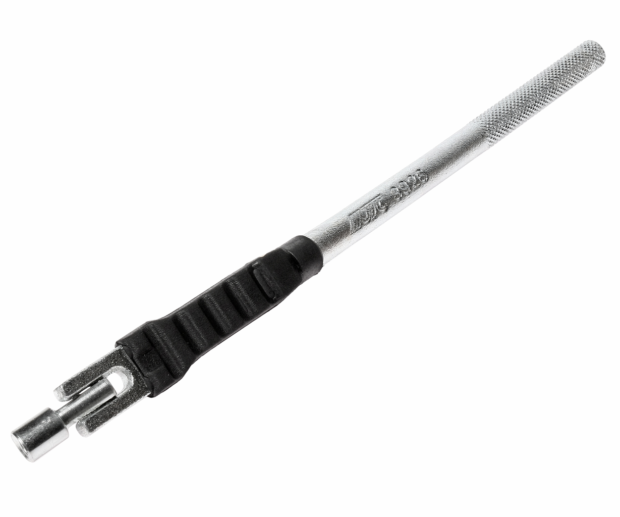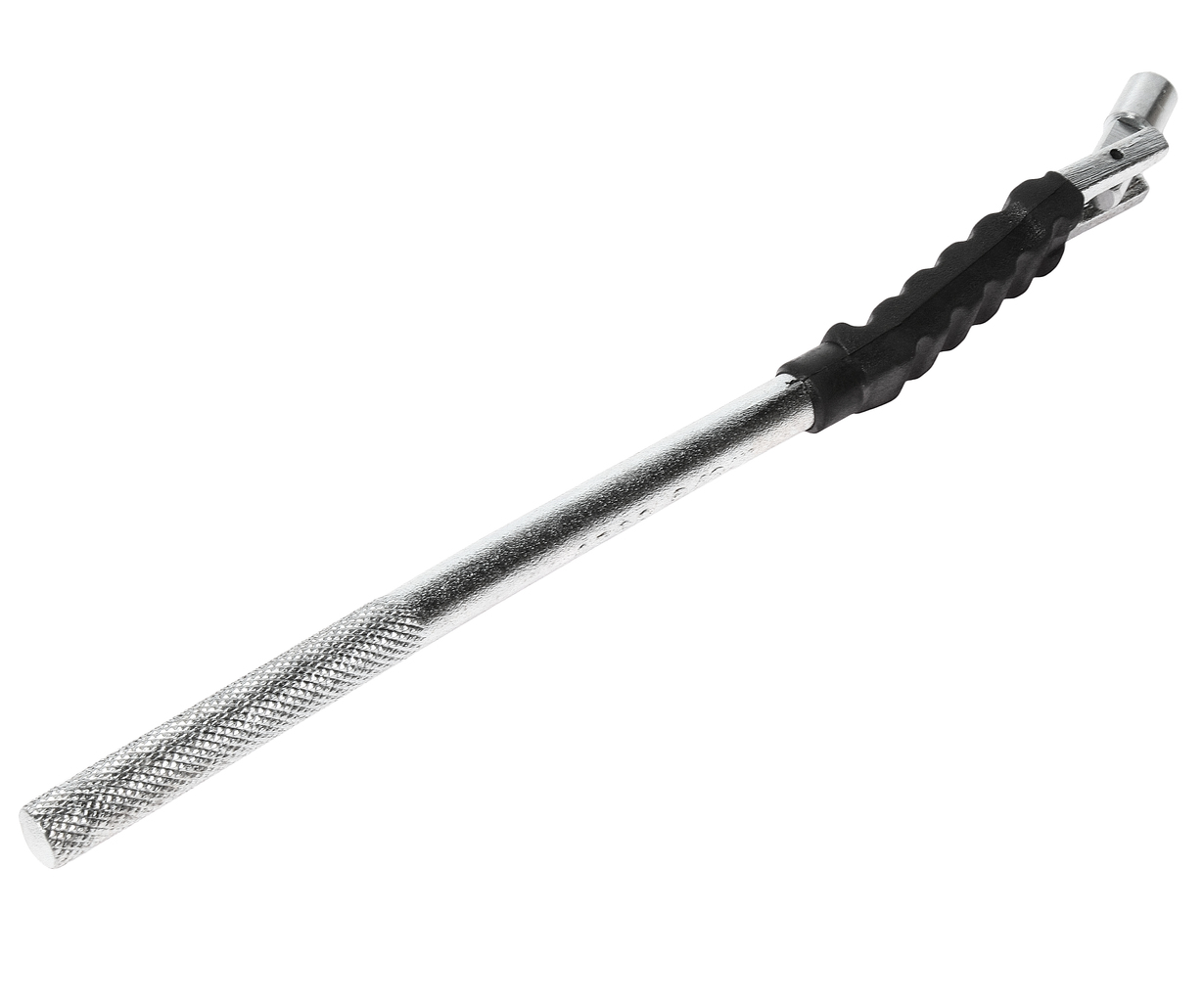 Комплектація Спеціальний пристрій - 1 шт. Запатентовано. Інструмент виконаний із сталі та призначений для встановлення вентилів на легкових автомобілях. Особливість патенту Захисне гумове покриття знижує ймовірність пошкодження диска. Може фіксуватися в 3 робочих позиціях завдяки сталевій кулі в місці з'єднання робочої частини інструмента з рукояткою.