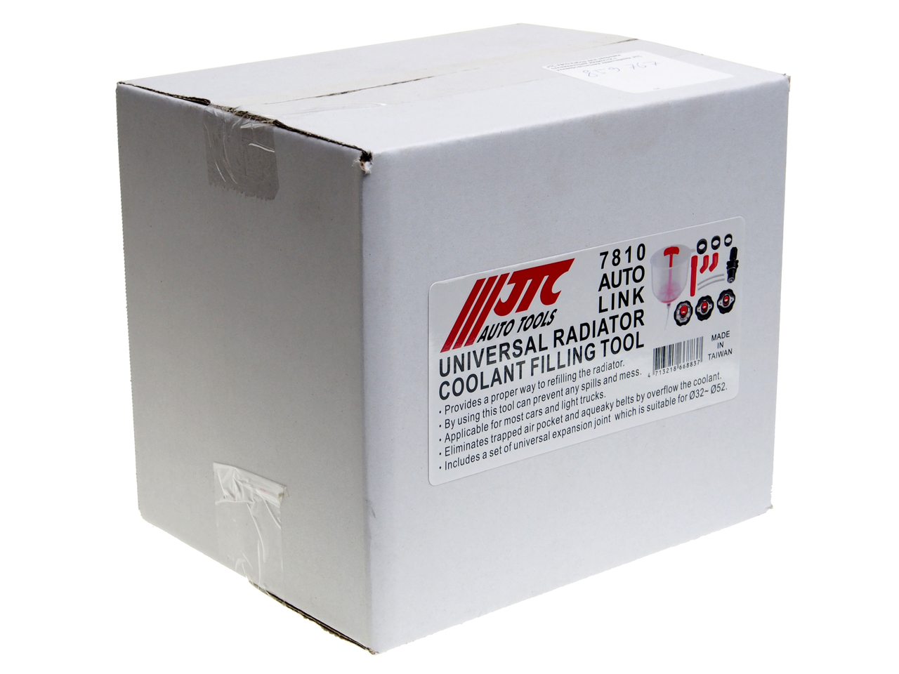 Забезпечує надійний спосіб заправлення радіатора. Пристрій дозволяє запобігти розливу рідини під час заправки. Перешкоджає утворенню повітряних кишень і переливу рідини, що охолоджує. У комплект входить універсальний перехідник під отвори діаметром 32~52 Застосування: для більшості автомобілів та легких вантажівок.