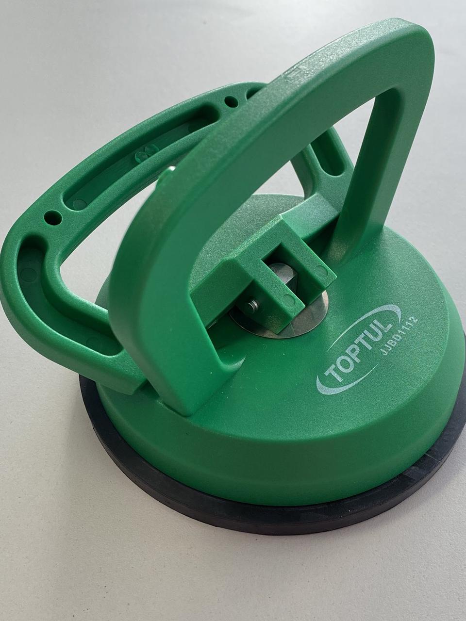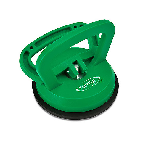 Вакуумний тримач скла TOPTUL JJBD1112 – спеціальний інструмент, що дозволяє суттєво полегшити встановлення/демонтаж та перенесення скла. Даний вакуумний тримач має відмінні показники адгезії до гладких поверхонь, дозволяючи фіксувати скло вагою до 45 кг. Конструкція тримача дуже проста, і складається із спеціальної присоски, діаметром 120 мм, корпусу та подвійну рукоятку. Завдяки подвійній рукоятці забезпечується надійне захоплення/випуск скла. Корпус знімач виконаний з міцного пластику високої якості, а його поверхня стійка до подряпин, що забезпечить тривалий термін служби інструменту. Даний тип інструменту широко використовується як автомобільних майстерень та СТО, так і фабрик з виробництва скла. Міцна пластикова ручка з гумовою присоскою; Підходить для плоских та непористих матеріалів, наприклад, скла, плитки, листового металу, мармуру.
