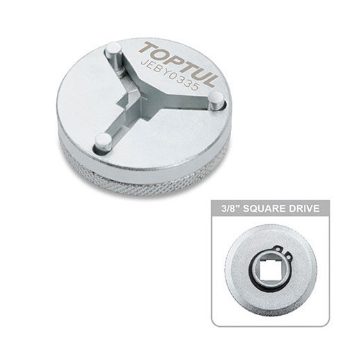 Пристрій для розведення гальмівних циліндрів TOPTUL JEBY0335. Регульовані двоконтактні поршневі гальмівні повітряні адаптери охоплюють широкий діапазон застосування транспортного засобу. Керований поворотом верхньої секції та легко керований від 20 мм до 35 мм відстані між штирковими центрами (діаметр штифтів 4 мм). Штирі призначені для зсуву при 110 нм; Використовуйте з приєднувальним квадратом 3/8”;