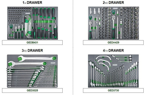 Візок для інструменту 8 секцій металева 862х498х857 мм. Оснащений 7-ма ящиками 751х438х75 1-му ящиком 751х438х155, завантаженість однієї полиці до 45 кг, здатна витримувати навантаження до 680 кг PRO-PLUS - це серія із збільшеною місткістю ящиків на 50%.