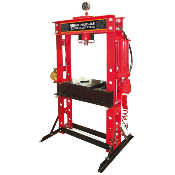 Основне призначення преса пневмогідравлічного TORIN TY50001 - це пресування деталей, вигин деталей, а також одне з призначень запресовувати та випресовувати підшипники та втулки, але ще при склеюванні поверхонь під тиском. Конструкція преса пневмогідравлічного TORIN TY50001 складається з потужної металевої рами, на якій встановлений потужний гідронасос, який приводить в дію гідроциліндр, що дає максимальне навантаження. А подача пневмоприводу збільшує максимальне навантаження гідравлічного пресу до 50 тонн. Контроль за навантаженням подається гідроциліндром можна здійснювати за допомогою компактного манометра встановленому в зручному і безпечному місці на гідравлічному пресі, а також на самому видному місці, щоб майстер з метою безпеки не відволікався від робочого процесу, який він проводить. Для плавності ходу стрілки манометра в нього залито спеціальний гель, властивості якого не замерзати при низьких температурах навколишнього середовища. Робоче місце преса становить 890мм за висотою. Горизонтальний упор можна коригувати по висоті в діапазоні, встановленому характеристиками виробника робочого простору, будь-яке раціональне місце для майстра. Регулює робочий простір по висоті в діапазоні робочої зони, в будь-яке зручне місце для майстра. Регулювання робочого простору по висоті легко можна виконати завдяки лебідці з корбою, встановленої на бічній частині преса гідравлічного. Вибираючи прес гідравлічний, ціна є одним із найважливіших і вирішальних факторів. Адже це досить дороге та важливе обладнання, яке служитиме на СТО не один рік!