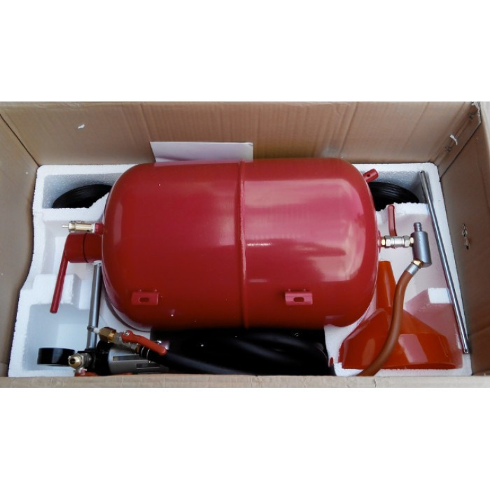 Піскоструминний апарат TORIN (артикул TRG4012) – це мобільне, компактне обладнання для підготовки поверхонь під фарбування або очищення від забруднень різних видів. Завдяки резервуару на 40л розташованому на колесах його можна перебазувати, а шланг довжиною 2,5м дозволяє працювати в місцях із проблематичним доступом та на висоті. Характеризується 170 – 510л/хв витратою повітря, що подається, і тиск 4-8бар, але при цьому його вироблення становить від 1,5 до 2,8м²/год. Як абразив у піскоструминний апарат можна застосовувати дрібний річковий пісок фракції якого в межах 0,1-0,8 мм або спеціальний електрокорунд. Пісок обов'язково повинен бути добре прожарений з мінімальним % вологості і просіяний перед використанням, дотримуючись цього правила, його можна використовувати повторно. Абразив подається напірним способом, водночас середня витрата в межах 25-40кг/год. Дане обладнання годиться як для робіт на автомобільних сервісах, так і для використання в побуті при виникненні необхідності в зачистці значних за розміром площ. У комплекті піскоструминного апарату йдуть 4 сопла різних діаметрів і маска для захисту очей працюючого. Габарити апарату 770х415х365мм, а вага без абразиву лише 19кг.