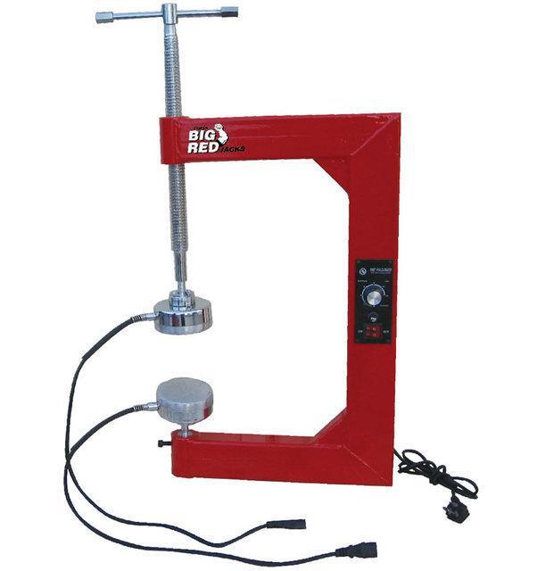 Вантажний вулканізатор змодельований у формі струбцини, на кінцях якої розташовані дві нагрівальні пластини потужністю по 500 Вт, що забезпечують двосторонній прогрів гуми і відповідно висококласну вулканізацію. Ця модель оснащена таймером, що контролює час роботи пристрою та повною автоматикою, що підтримує температуру під час всього ремонтного процесу, має захист від замикання. До комплекту додається 6 додаткових насадок, які дозволяють відремонтувати практично всі види пошкоджень. Опціонально можна придбати насадку для приварювання ніпеля. Вулканізатор вантажний TORIN TRAD010 - призначений для ремонту шин вантажних автомобілів методом гарячої вулканізації.