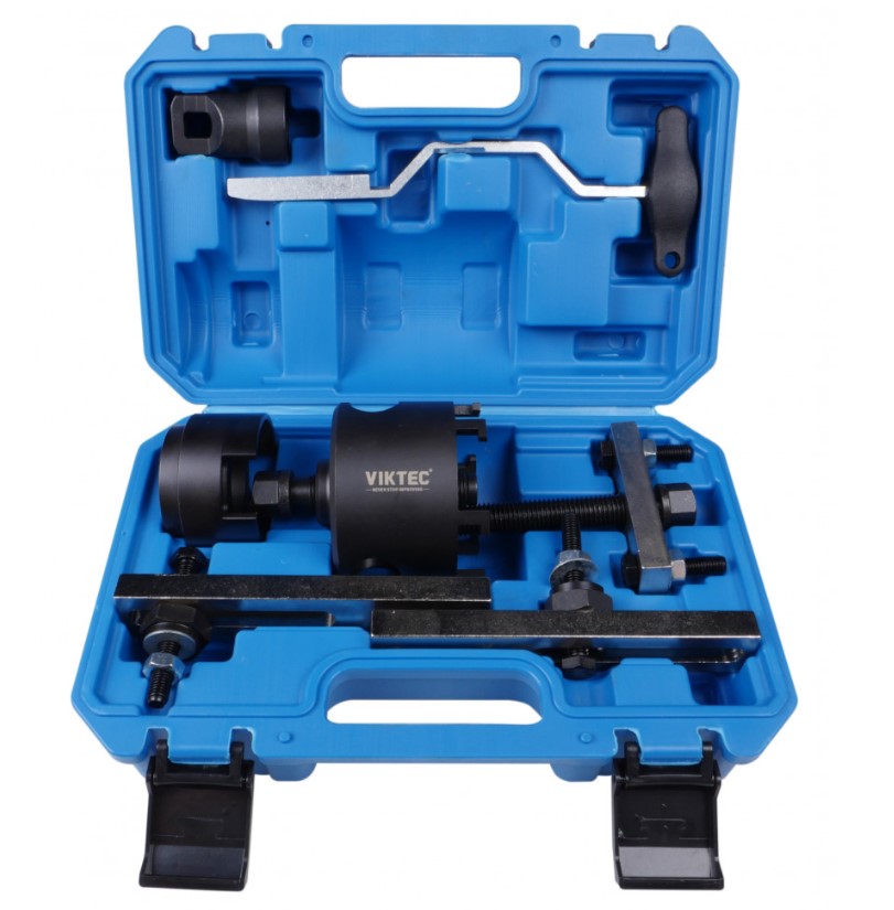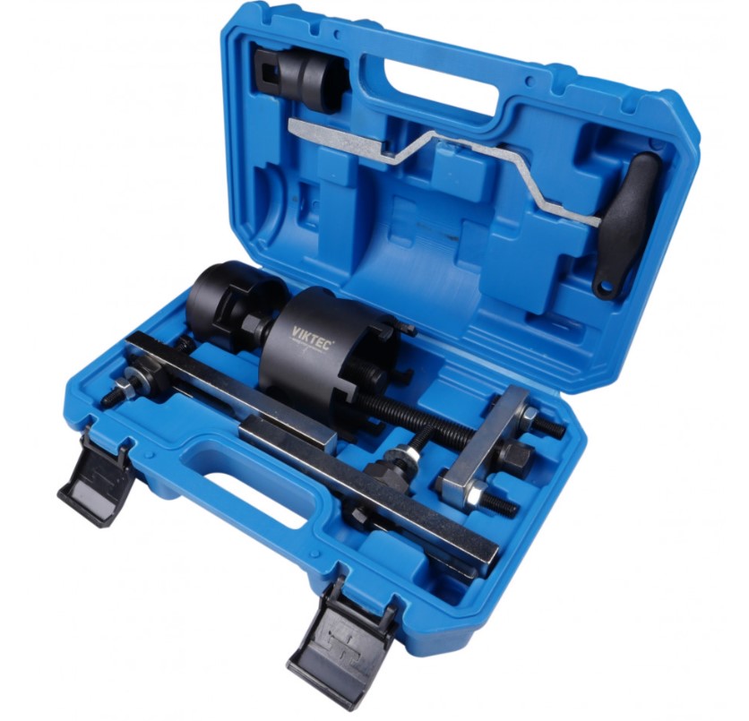Комплектація: Знімач зчеплення. ОЕМ Т10373 Силовий гвинт до знімачів зчеплення. Мірний елемент. ОЕМ Т10374 Упор стопорного кільця. ОЕМ Т10376 Пристрій для блоку мехатроніка 7-швидкісної коробки DSG: T10407. Розпірний інструмент (ОЕМ Т10323) складається з: Планка фіксуюча (коротка). Болт. Планка фіксуюча (довга) – 2 шт. Болт2 шт. Спеціально призначений для встановлення/зняття муфти коробки передач. Автомобілі Volkswagen, Audi оснащені 7-швидкісною автоматичною коробкою передач прямого перемикання DSG. Застосування по елементам Знімач зчеплення: T10373 Застосування зйомника VAG: 7-ступінчаста дводискова АКП 0AM Призначення: знімач для багатодискового зчеплення Застосування за моделями: Golf 2004 / Jetta 2006 / Golf Plus 2005 / Passat CC 2 позиціонування деталей АКП 0AM. Застосування інструменту: Golf 2004, Golf Plus 2005, Audi A3 2004 з 7-ступінчастою АКП 0AM (Mechatronik). Упор стопорного кільця: Т10376 Призначення пристрою для КПП: монтаж манжетного ущільнення валу. Застосування: Golf (2004 р.в. і вище), Golf (2009 і вище), Golf Plus (2005 р.в. і вище), Touran (2004 р.в. і вище), Audi A3 (2004 р.в. . і вище), Eos (2006 р.в. і вище), Passat (2006 р.в. і вище), Passat (2009 р.в. і вище), Scirocco (2009 р.в. і вище), а також інші автомобілі концерну VAG c 7-ступінчастою КПП DSG цією коробкою передач. Тип трансмісії: 7-ступінчаста КПП DSG. Розпірний інструмент: Т10323 Призначення: використовується як розпірка при знятті приводного валу КПП. Застосування: Polo 2002, Golf 2004, Jetta 2006, Golf Plus 2005, Eos 2006, Passat 2006, Passat CC 2009, Touran 2004, Phaeton 2003, Audi A3 2004, Audi TT2 20 07 , Audi A8 2003, Caddy 2004, Transporter 2004. Пристрій для блоку мехатроніка 7-швидкісної коробки DSG: T10407. Призначення: зняття навантаження із плунжерного мехатроніка.