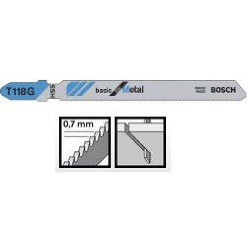 Пильне полотно Bosch Basic for Metal T 118 G із швидкорізальної сталі з фрезерованими зубами для тонкого різання по прямій листового металу (0.5-1.5 мм).