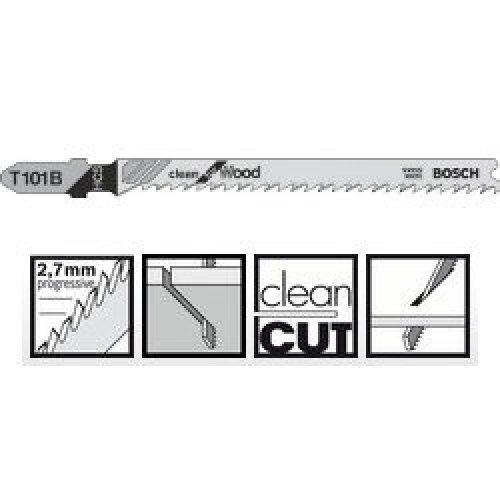 Пильне полотно Bosch Clean for Wood T 101 B із високовуглецевої сталі зі шліфованими загостреними зубцями для тонкого різання по прямій: