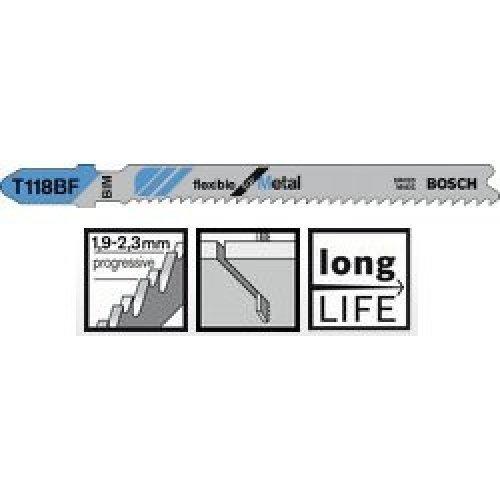 Пильне полотно Bosch Flexible for Metal T 118 BF з біметалу з фрезерованими зубами для тонкого різання по прямій листового та перфорованого металу (2.5-6 мм).
