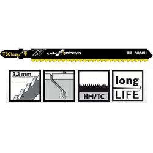 Пильне полотно Bosch Special for Synthetics T 301 CHM із твердосплавного металу зі шліфованими зубами для тонкого різання по прямій епоксидному склопластику та Corian (< 65 мм).