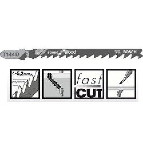 Пильне полотно Bosch Speed for Wood T 144 D із високовуглецевої сталі зі шліфованими зубами для швидкого товстого різання по прямій м'якій деревині, ДСП, ДВП, столярних плитах (5-50 мм).