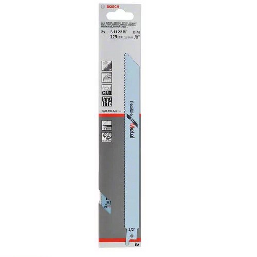 Bosch S 1122 BF -пильне полотно для пиляння листового металу, а також труб діаметром до 175 мм. Використовується з шабельною пилкою для швидкого різання. Пилочки постачаються в комплекті з 2 шт.