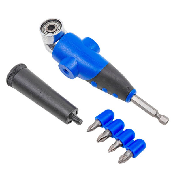 Адаптер-перехідник під шуруповерт Forsage F-04631. Насадка, яка дозволить працювати інструментов під кутом 105 грд.Представляє з себе механізм на підшипниках, що передає обертові рухи шуруповерта на посадковий отвір під шестигранну біту (6.35 мм).Посадкове місце оснащено потужним магнітом, який не дозволить біті випасти.Набір- Адаптер-перехідник- Ручка-тримач, що вкручується з боку адаптеру- 4 HEX бітиОсобливості- Робочий кут: 105 грд.- Під стандартну біту: 1/4" (6.35 мм)- Максимальна частота обертів: 1200 об/хв- Обертовий момент: 12 Нм- Хвостовик: шестигранний- Матеріал: хромованадієва сталь, пластик- Вага: 89 г