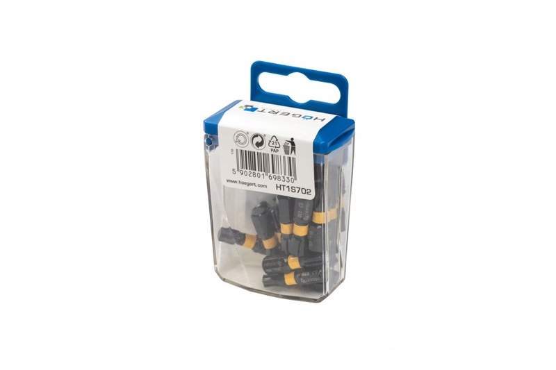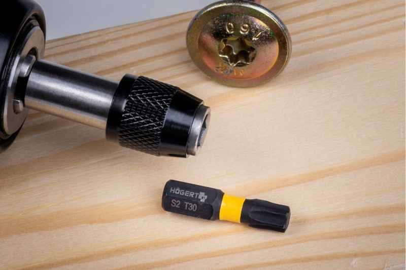 - Щоб витримувати важкі умови роботи, вони виготовлені з високоякісної, загартованої легованої сталі S2. Склад металу, з якого виготовлені біти, робить їх більш стійкими до скручування під час передавання зусилля на гвинт, що дозволяє працювати з високим моментом обертання.