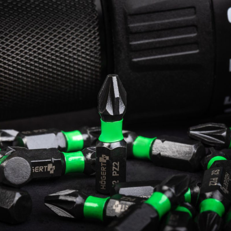 - Щоб витримувати важкі умови роботи, вони виготовлені з високоякісної загартованої легованої сталі S2. Склад металу, з якого виготовлені кінцівки, робить їх більш стійкими до скручування під час передавання зусилля на гвинт, що дозволяє працювати з високими моментами обертання.