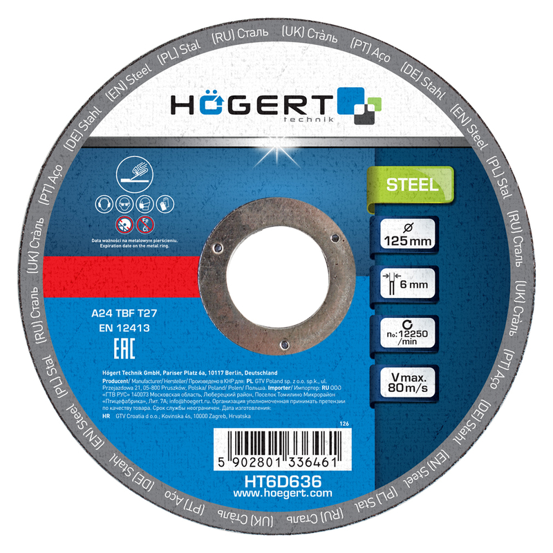 HOEGERT HOEGERT Диски шліфувальні по металу (уп/10 шт) HOEGERT 125 (HT6D636) HT6D636
