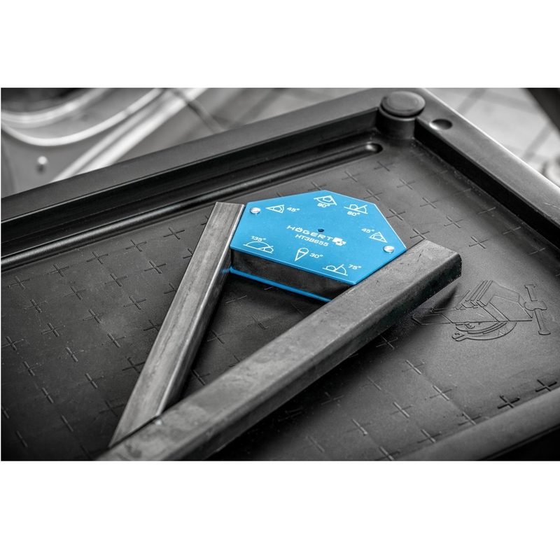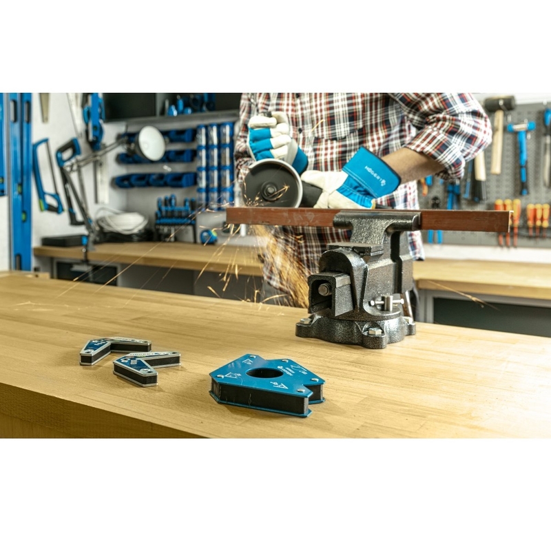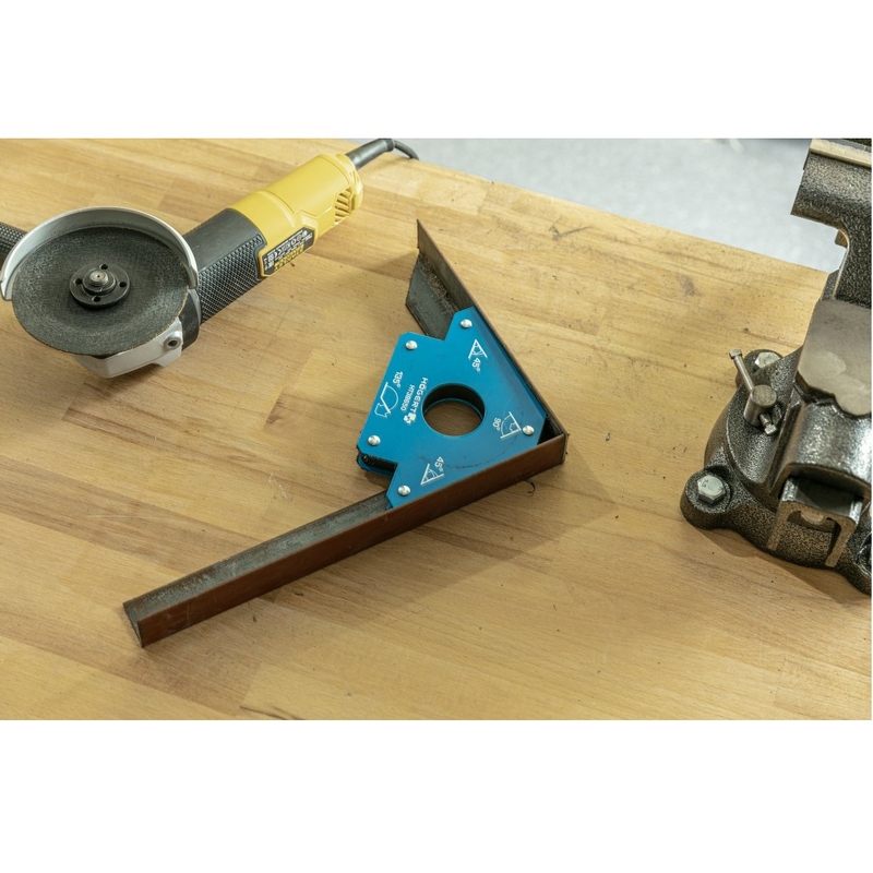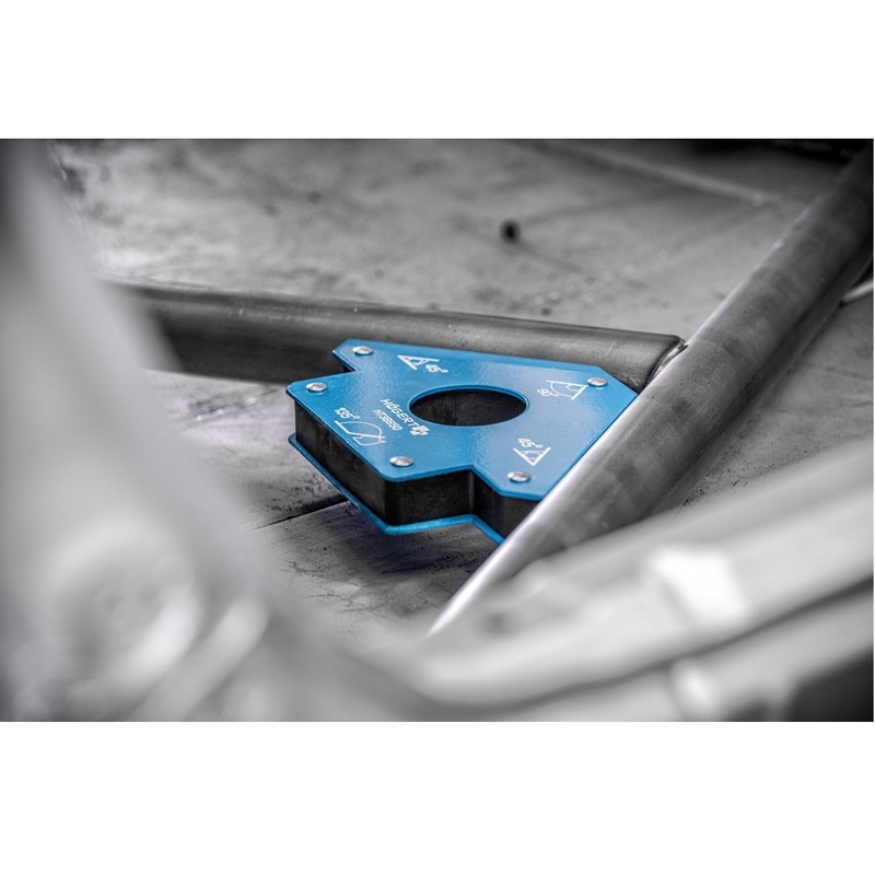 Магнітний тримач служить для фіксації металевих деталей та точного виставлення кутів при зварюванні та монтажі. Дозволяє виставляти кути 45º, 90º та 135º. Простота монтажу тримача підвищує швидкість роботи та дає можливість виконання робіт одним оператором.