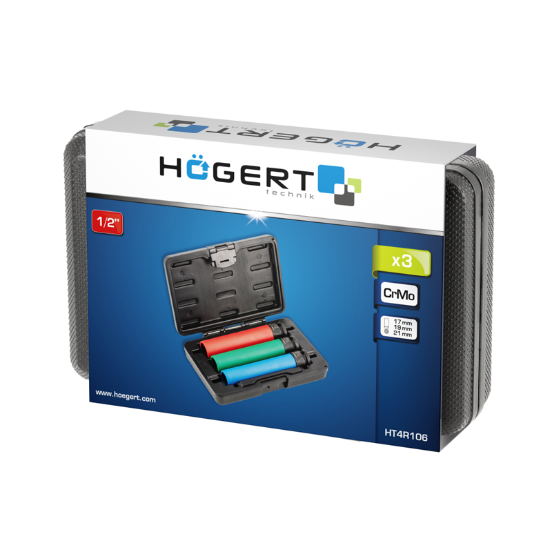 HOEGERT Набір довгих голівок ударних для легкосплавних дисків, 3 шт. HOEGERT 17 - 21 (HT4R106) HT4R106