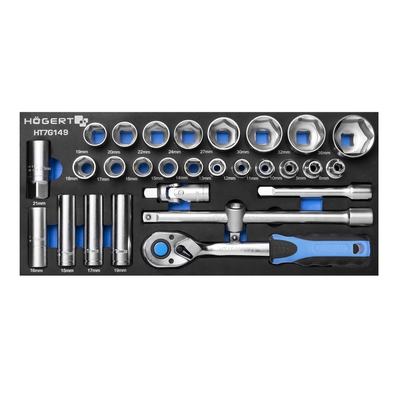 HOEGERT Набір голівок 1/2" з тріскачкою та аксесуарами в ложементі EVA HOEGERT 27 (HT7G149) HT7G149