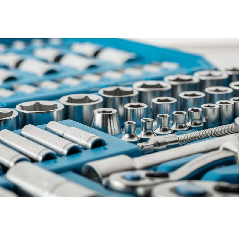 - торцеві головки, біти та аксесуари виготовлені з високоякісної легованої сталі CrV;