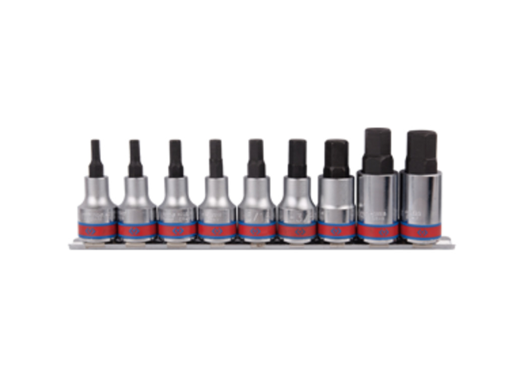 KING TONY Набір торцевих біт 1/2", HEX, 3/16"-5/8", 9 одиниць на планці 4110SR10