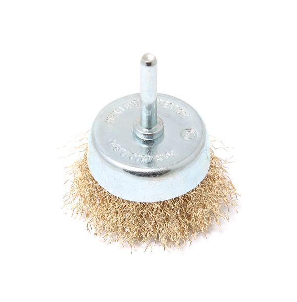 Щітка для дриля «чашка» RockForce RF-BCR003 діаметром 75 мм, зі шпилькою, із щетиною з латунованого крученого дроту, використовується для очищення металевих, дерев'яних та пластикових поверхонь від незначних забруднень та залишків лакофарбових покриттів. Допомагає підкреслити структуру матеріалу або надати йому шорсткості. Форма чашки дозволяє обробляти плоскі ділянки великої площі. Хвостовик діаметром 6 мм встановлюється в патрон електродриля, що підтримує швидкість 4500 об/хв. Під час роботи потрібно використовувати засоби індивідуального захисту – респіратор, окуляри, навушники, спецодяг та взуття. ПеревагиВитий дріт зберігає свою форму після зняття навантажень, тому щітка підходить для інтенсивного використання.Латуноване покриття щетини та цинкове – корпуси забезпечують захист щітки від корозії.Оснащення виготовлене на великому заводі зі строгим контролем якості на всіх етапах виробництва, що підтверджує її надійність.Щітка стане в нагоді як професійним, так і домашнім майстрам.