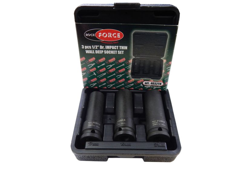 ROCKFORCE Набір головок ударних тонкостінних 1/2" 6гр. 3ін. (17,19,21мм) ROCKFORCE RF-4032TH RF4032TH