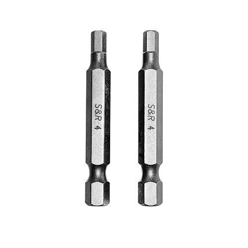 Біти S&R Hex4 x 50 мм 2 шт – насадки для шуруповерта або викрутки зі змінними бітами. хрому. Завдяки цьому біти підходять для інтенсивного використання разом із шуруповертами.