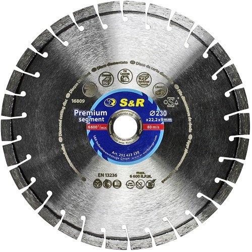 S&R Premium Segment 230х22,2 мм – алмазний відрізний диск для роботи з бетону, армованого бетону, старого бетону та піщанику. Диск серії Premium Segment призначений для професійної роботи з високими навантаженнями.