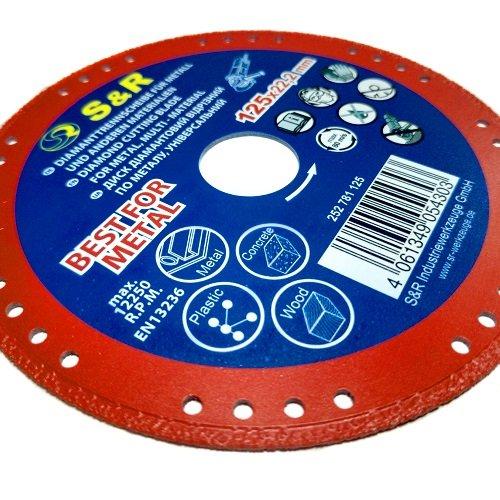 S&R 125x22.2 мм – універсальний алмазний відрізний диск, який ідеально підходить для роботи з металом, а також відмінно ріже деревину, пластик, бетон, цеглу та ін.