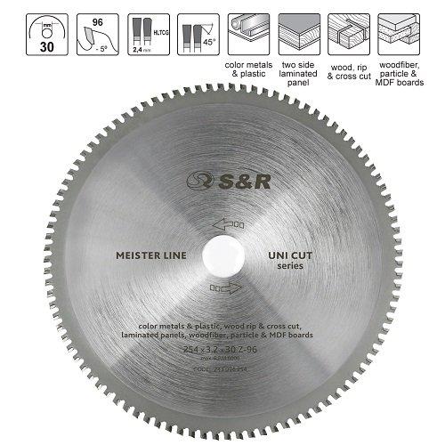 S&R Meister UniCut 254x30х3,2 мм – універсальний пильний диск для розпилювання різних видів дерева та матеріалів, що містять деревину, а також пластику, кольорових металів, ламінату.