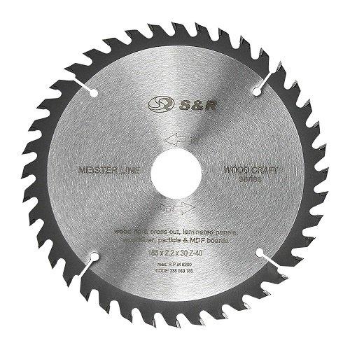 S&R Wood Craft 185x30/25,4/20x2,2 мм – пиляльні диски серії Meister призначені для різання як твердої, так і м'якої деревини, панелей МДФ, ДСП, ДВП та інших дерев'яних виробів.