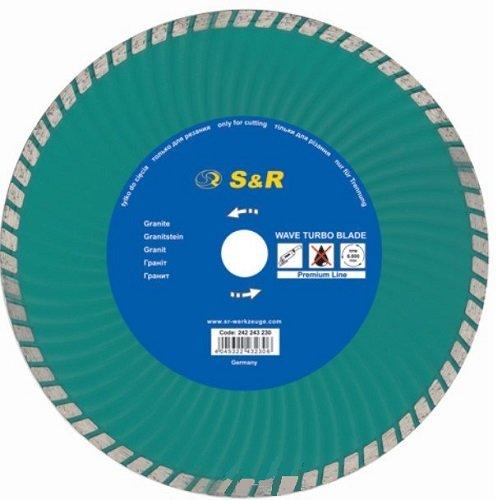 Диск відрізний S&R Turbo по граніту Premium з підвищеним ресурсом для різання м'якого та твердого граніту, керамограніту, гнейсу, азбестового та цементного шиферу, вогнетривів, бетонних бордюрів, армованого та сильно армованого бетону, клінкеру.