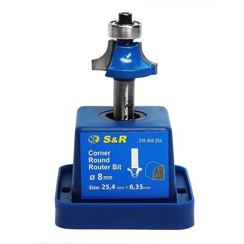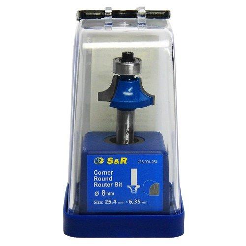 Фреза S&R 25,4х6,35 мм – калювальна кромкова фреза з підшипником для обробки країв заготовки з дерева та дерев'яних панелей. Виготовлена фреза з високовуглецевої сталі, завдяки чому інструментом можна працювати як з м'якою, так і з твердою деревиною. На кінці обладнана фреза підшипником для легкого проходження по деталі, що запобігає проникненню фрези в деталь.